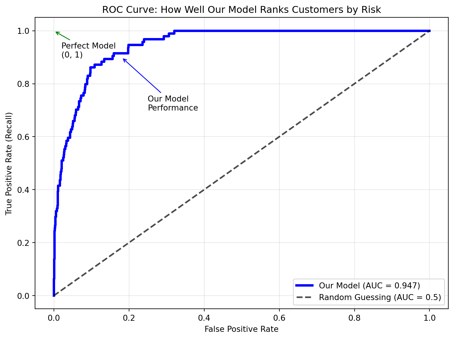 False Positives (FP): Model incorrectly predicts positive (e.g., safe customer flagged as high risk) - Type I Error