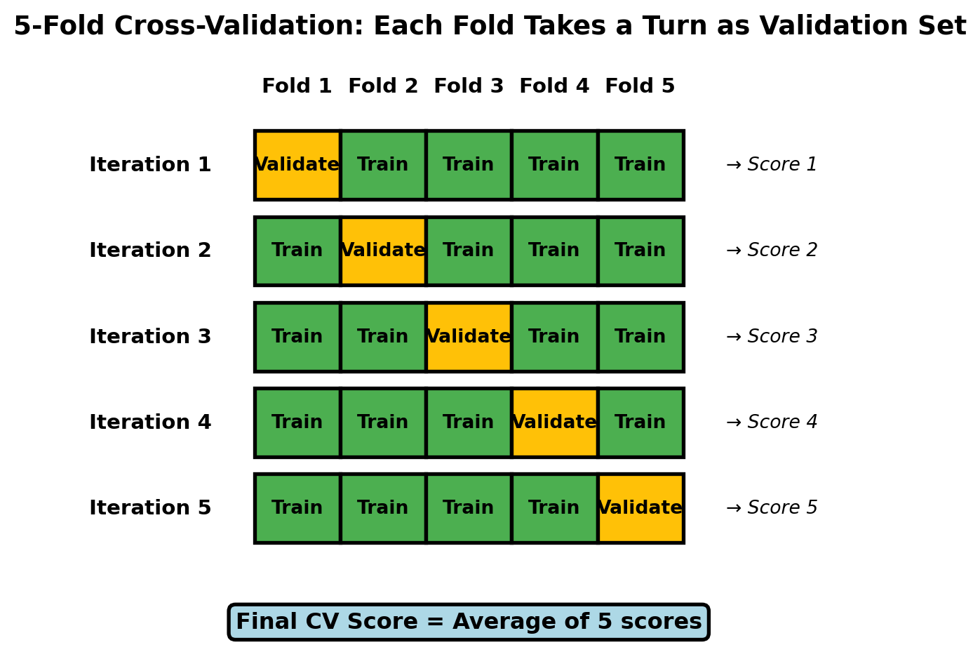 Why does this matter? When you tell stakeholders “this model achieves 95% accuracy,” they need to confidently expect production performance to match your test scores. Proper cross-validation prevents costly surprises, maintains your credibility as a data scientist, and ensures models perform as expected when deployed. This is the foundation of trustworthy, production-ready machine learning.