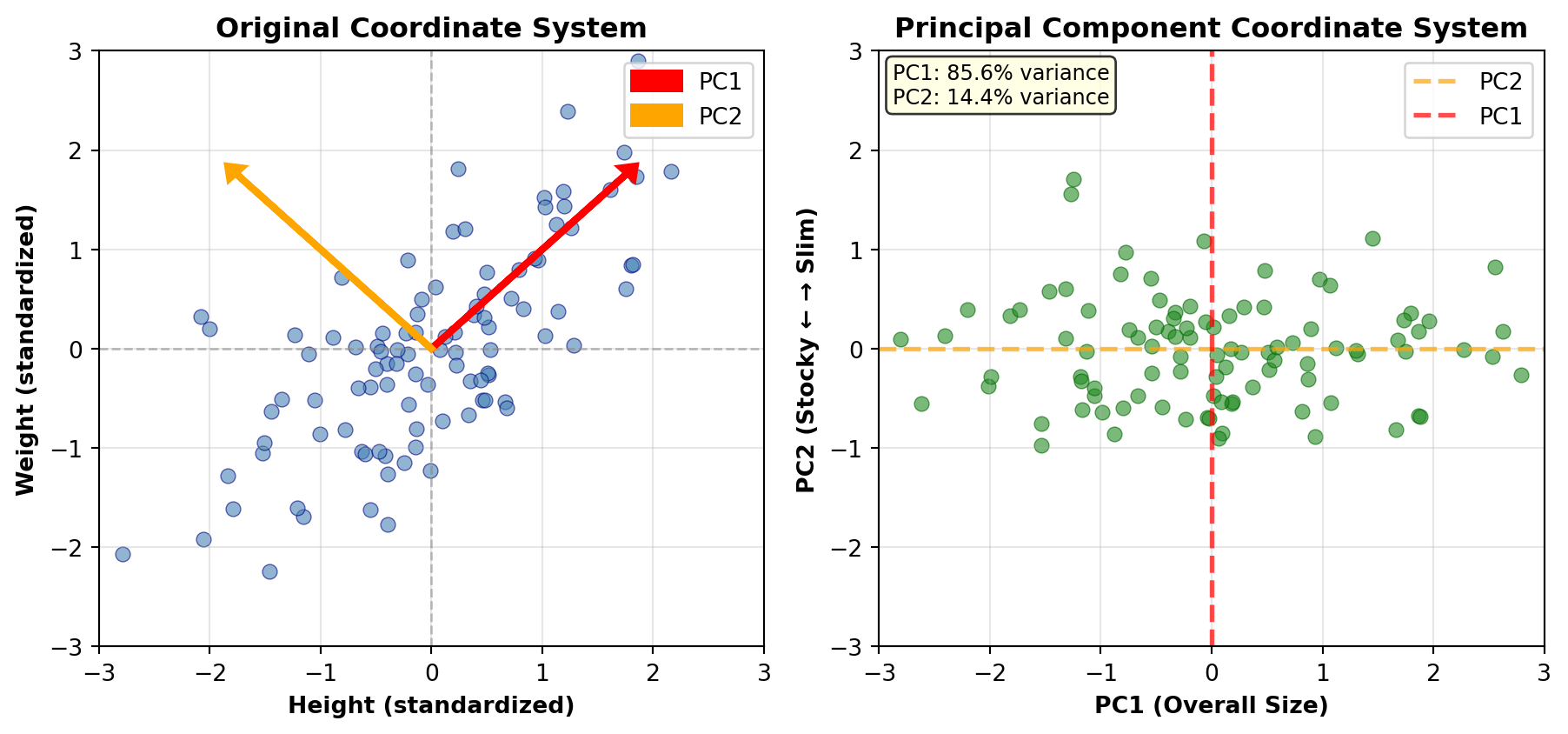 Imagine you’re analyzing customer behavior using 50 different features: purchase frequency across product categories, browsing patterns, demographic information, social media engagement, and more. Each feature captures something about your customers, but do you really need all 50? What if most of the meaningful variation in customer behavior could be captured by just 5-10 carefully constructed combinations of these features?